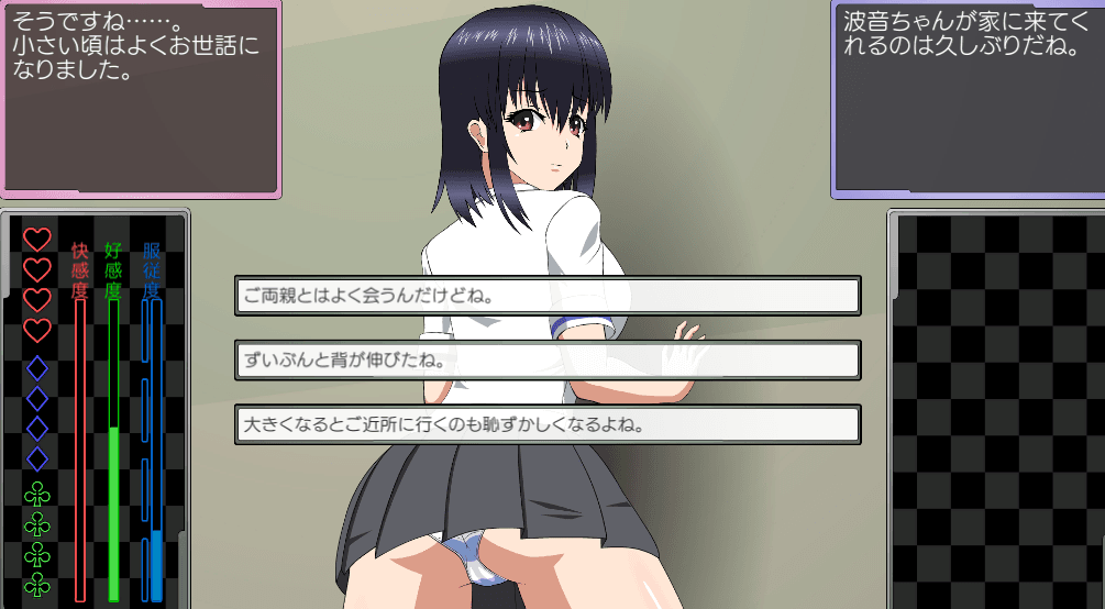 | ♡マーク | 快感度に関する会話内容によって溜まり、エンディング分岐に関与 |