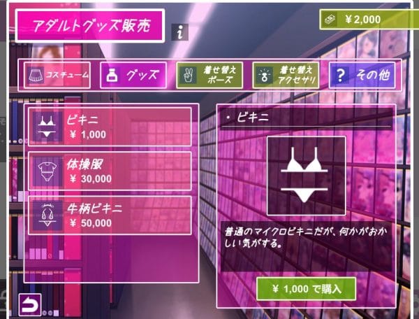 「コスチューム、赤飯」などは早めに購入しておくとHシーンの開放が