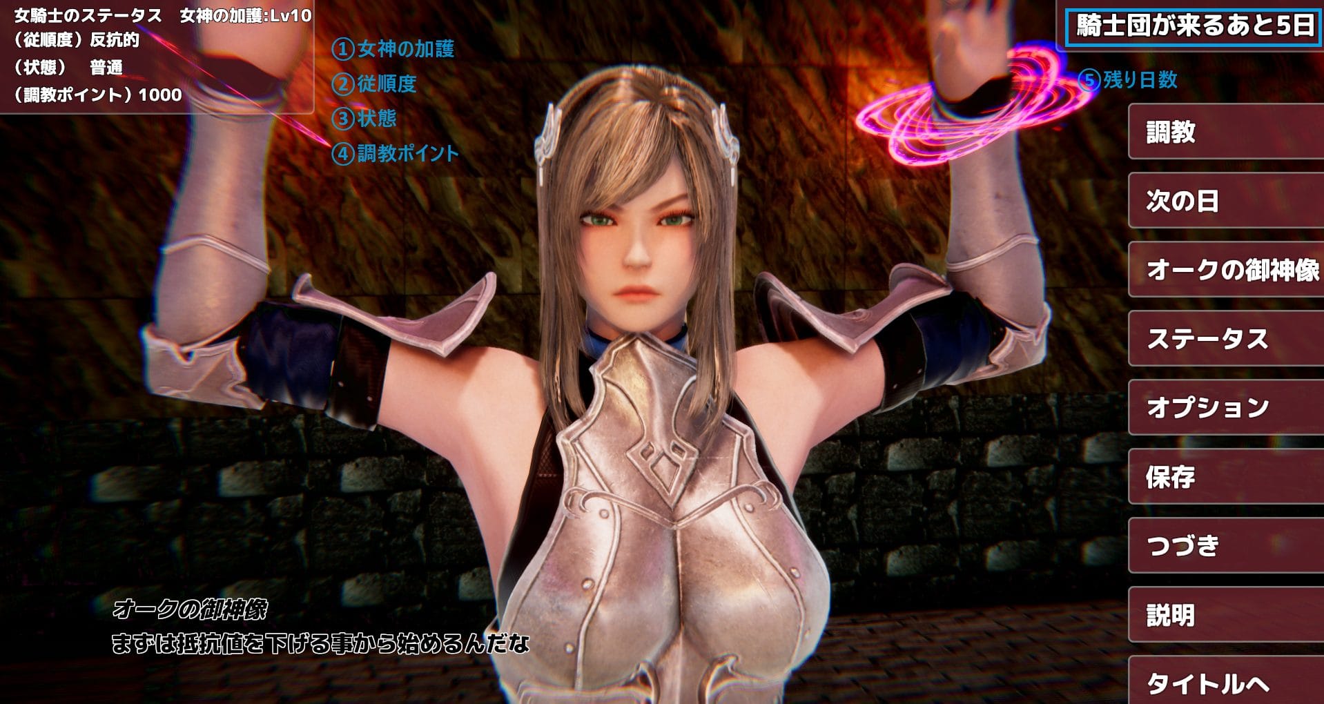 ”女神の加護” と呼ばれる女騎士のステータスを下げる事が目標となっています。