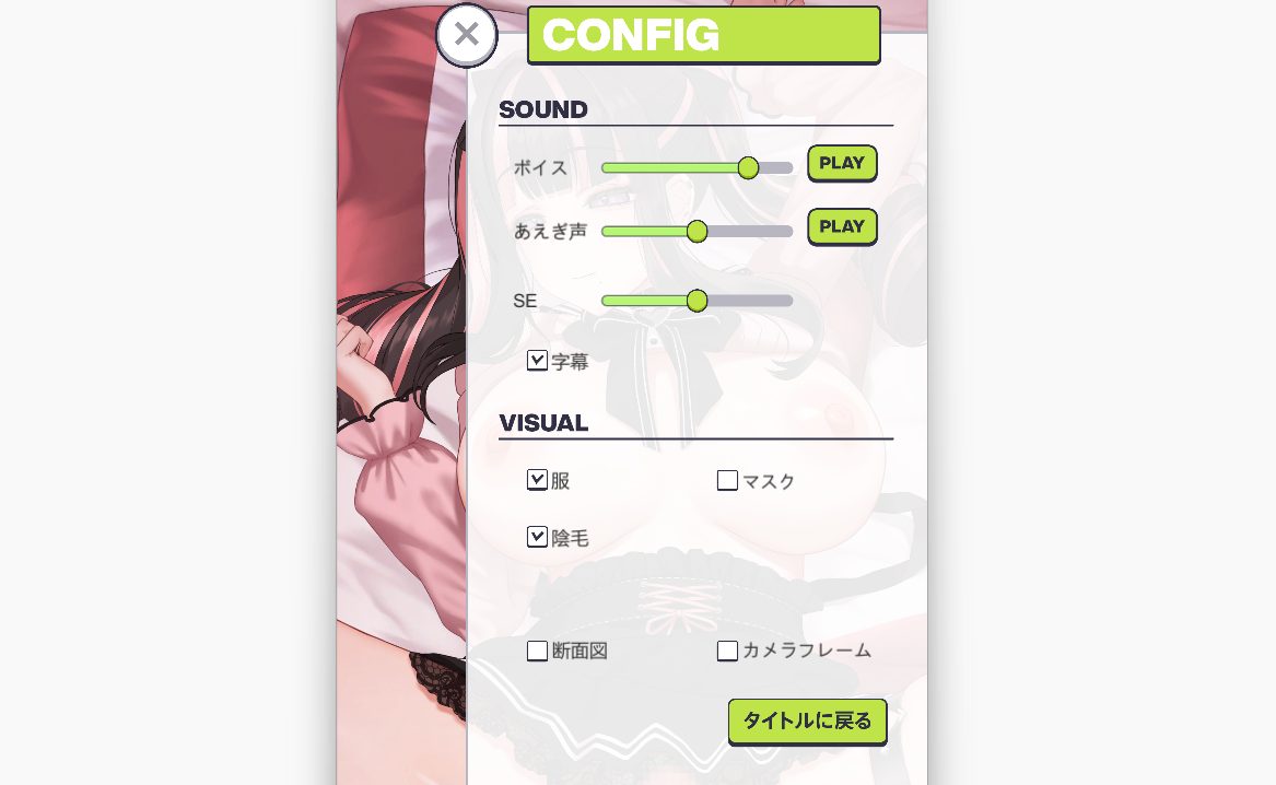 オプション | 音量調整、「服、陰毛」有無などを設定できる そのシーンによってオプション項目は異なる |