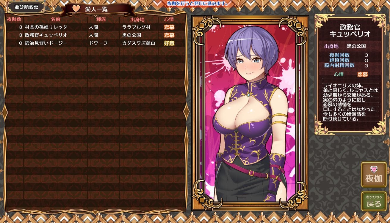 ストーリーが進むにつれて、愛人(ヒロイン)が増えていきます。