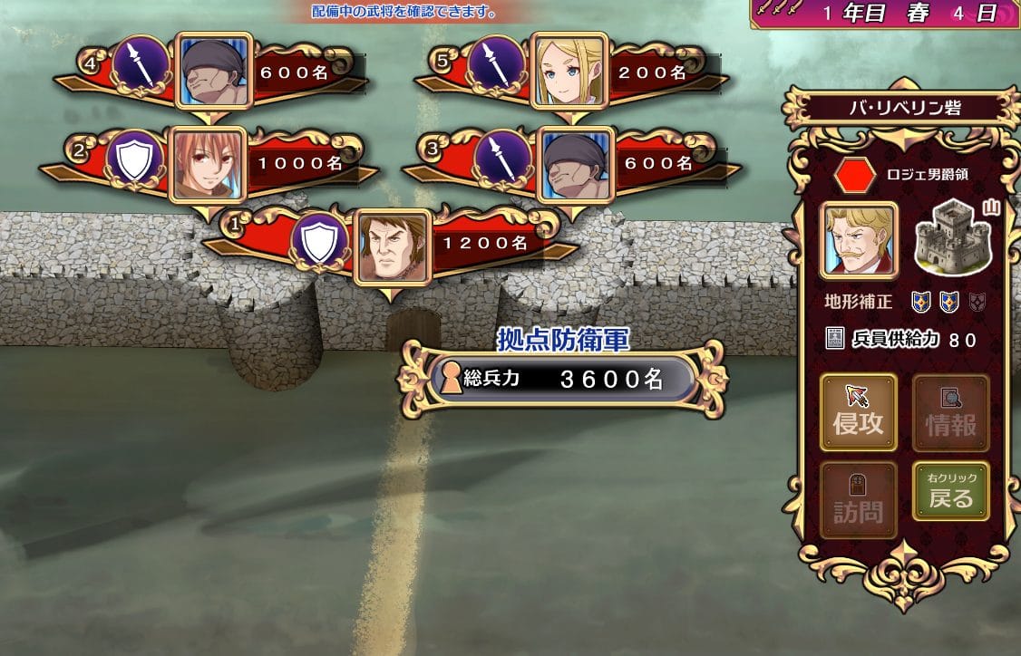 敵の総戦力が上記の例だと「3600名」ですので、基本的にはその戦力に