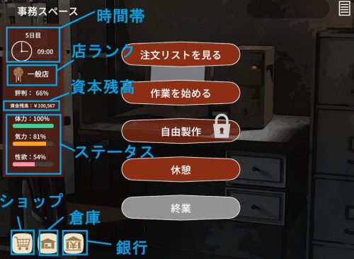 「ラブドール制作→利益上げる→設備拡張→口コミ評価上がる→物語進行」