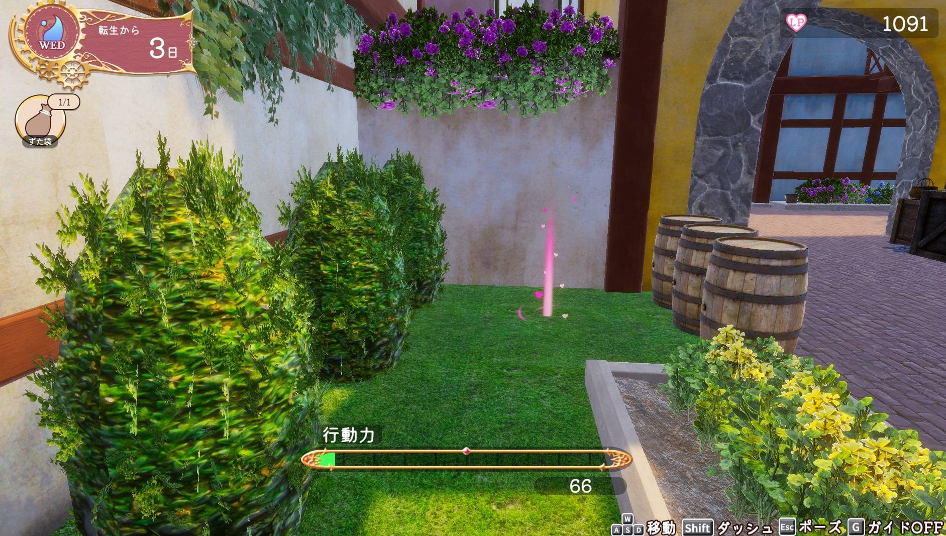 探索で歩き回ると▼のようにラブポイントが落ちていたりアイテムなども拾えますよ