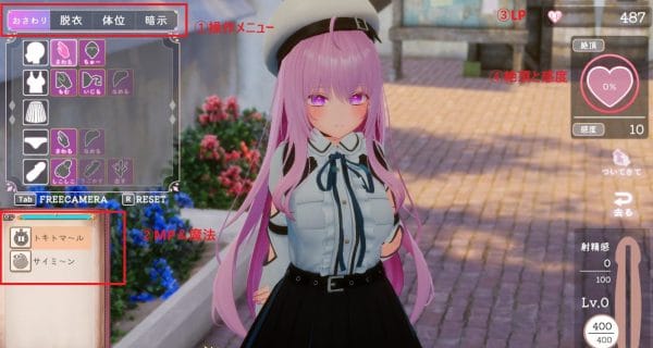 | 淫乱度 | おさわりをして感度を上げる事で上昇する 上昇させるとHプレイ内容が拡張できる |