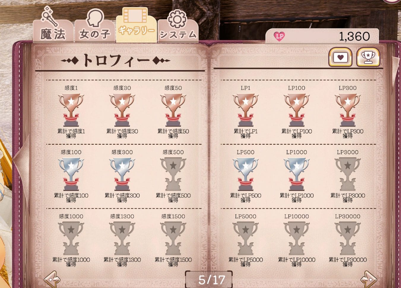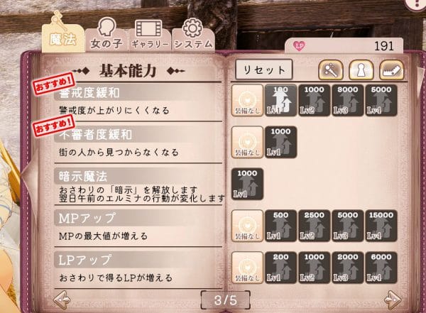 | ③LP | ラブポイントの略称で魔法習得などに交換する |