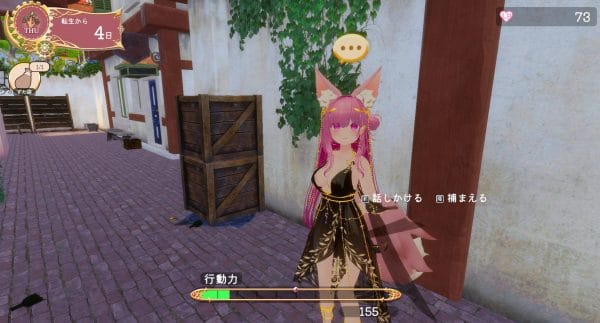 ①ヒロインに対して ”捕まえる” コマンドを実行します