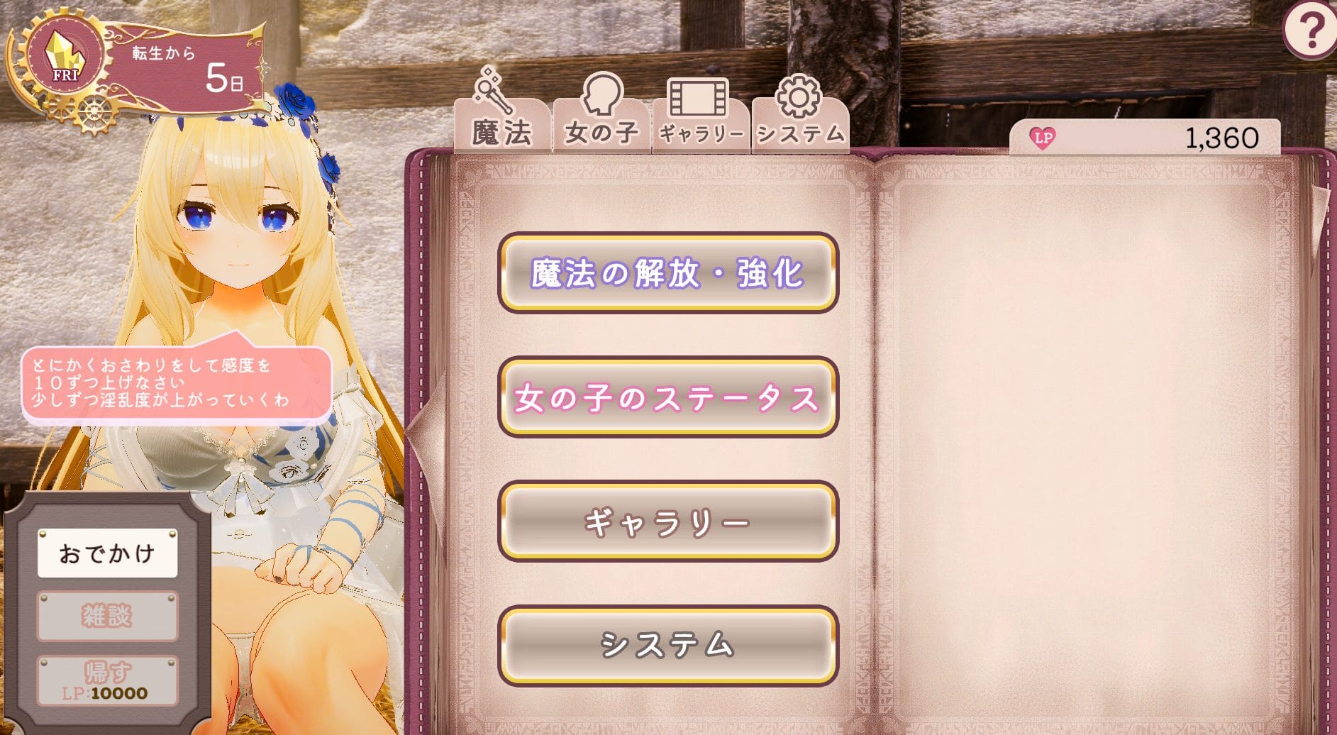 | ③LP | ラブポイントの略称でおさわりすることで上昇する LPは魔法習得などと交換する時に使用する |