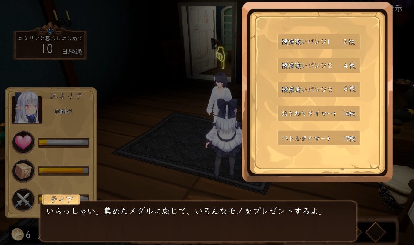 自宅では、セーブをしたりヒロインの状況を確認したりすることができます。