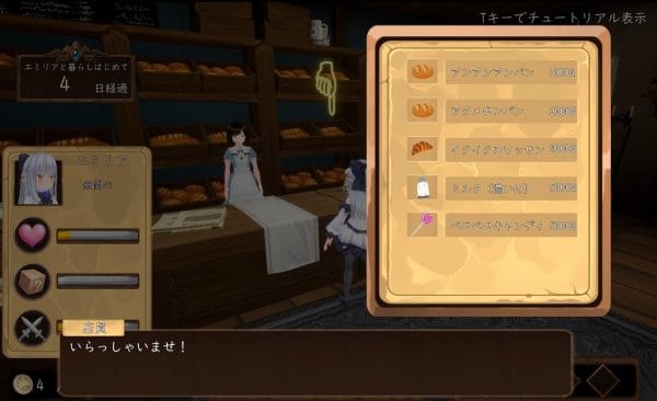 探索パートでは、街中を歩きアイテム収集、アイテムを購入して