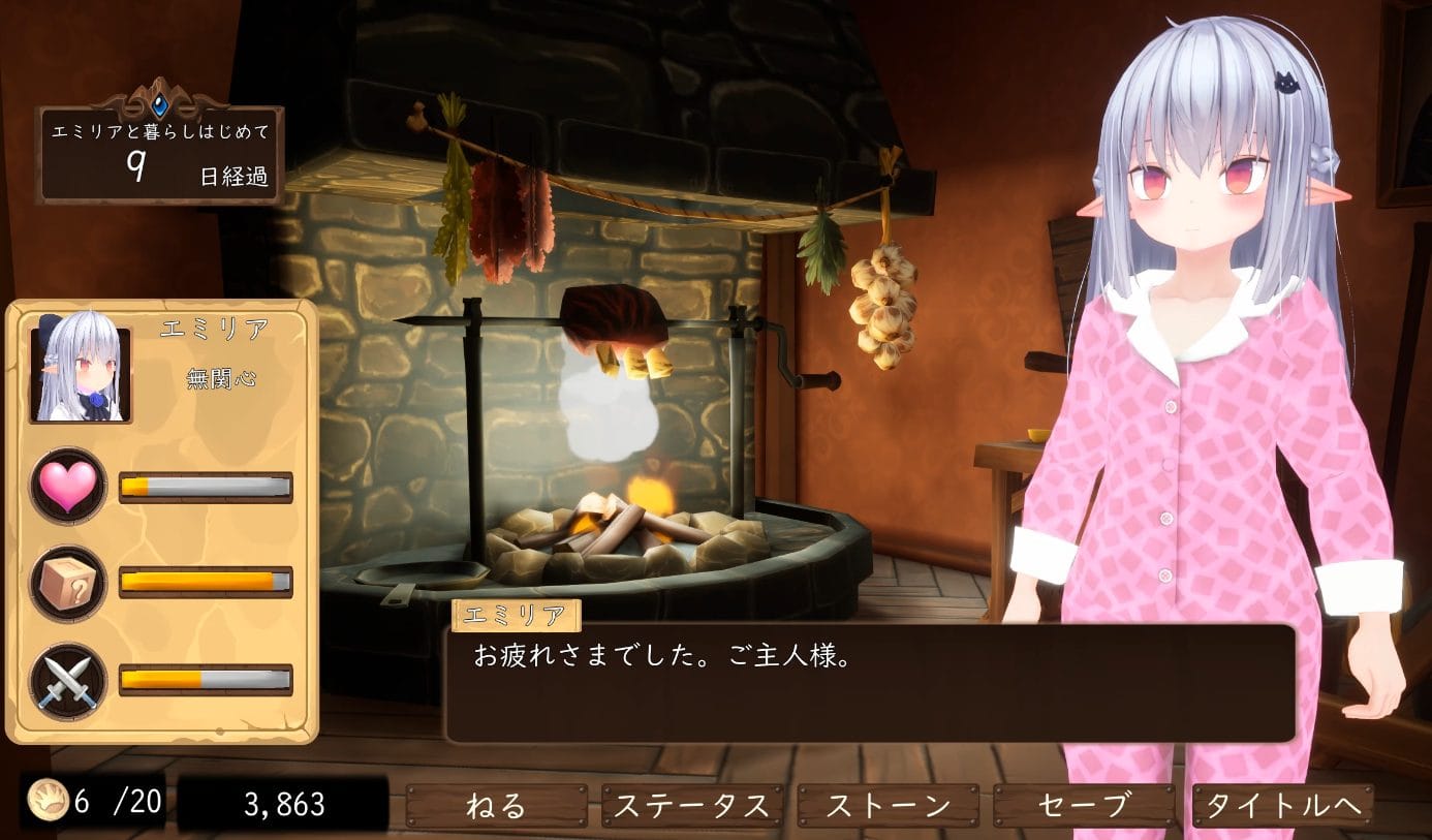ロ●体系のエルフを購入した主人公は、彼女の心を開くべく少しずつ