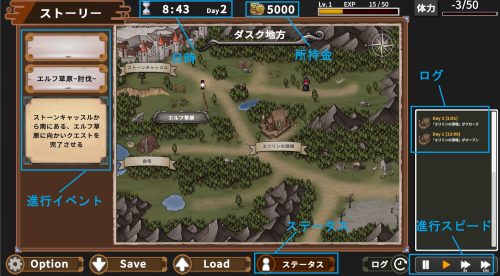 進行スピード | 時間スピードを「停止/等速/3倍速/10倍速」に変更できる |