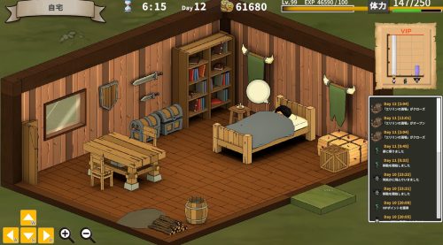 自宅 | プレイヤーのHP回復するための部屋 HP10回復するごとに1時間経過していく |