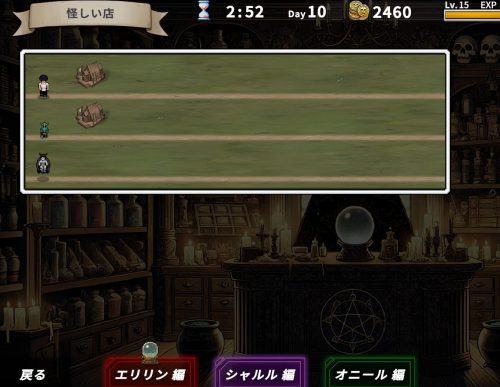 ステータス | プレイヤーの現在ステータスや強化画面に移動する |