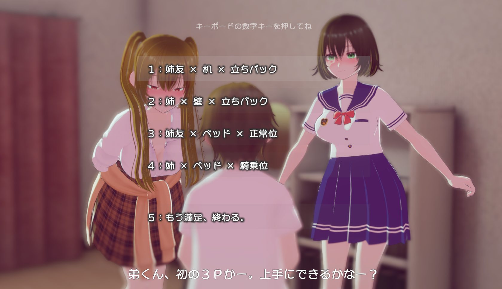 2Fの自室で宿題をするを選び、その後に姉の部屋に入るとエロシーン