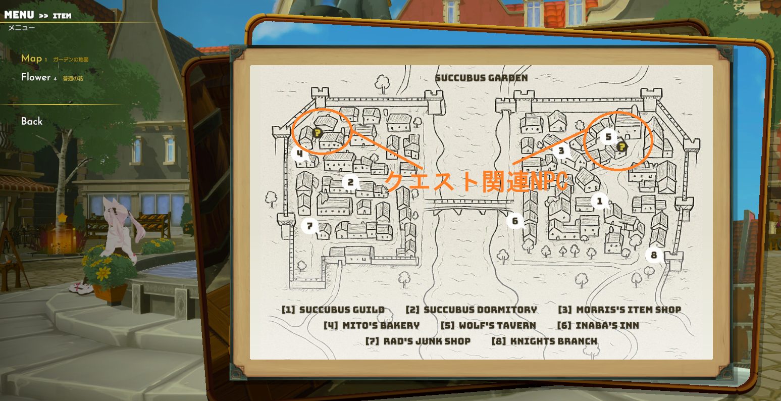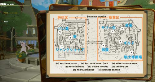 メニューから見えるマップですが、ゲーム内では英語も混じっているので