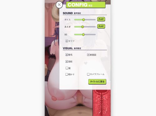 オプション | 音量調整、「服、陰毛」有無などを設定できる そのシーンによってオプション項目は異なる |