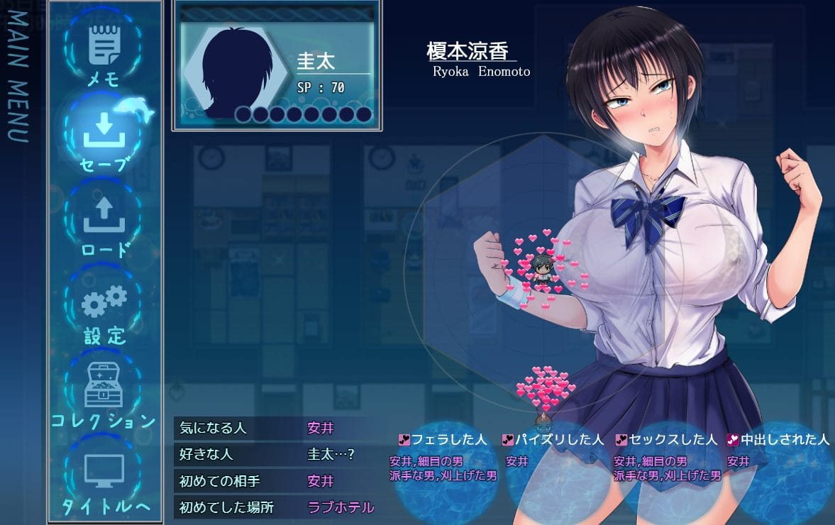 メニュー内のステータス画面を開くことで、涼香が誰に心が向いているのか