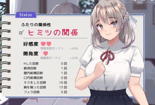 ヒロインと恋仲になりイケナイ関係へと進展していくお触りエロゲーになります。