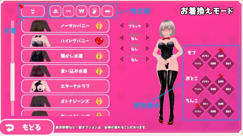 | 衣装着替え | 水着などの衣装をカスタマイズできるメニュー |