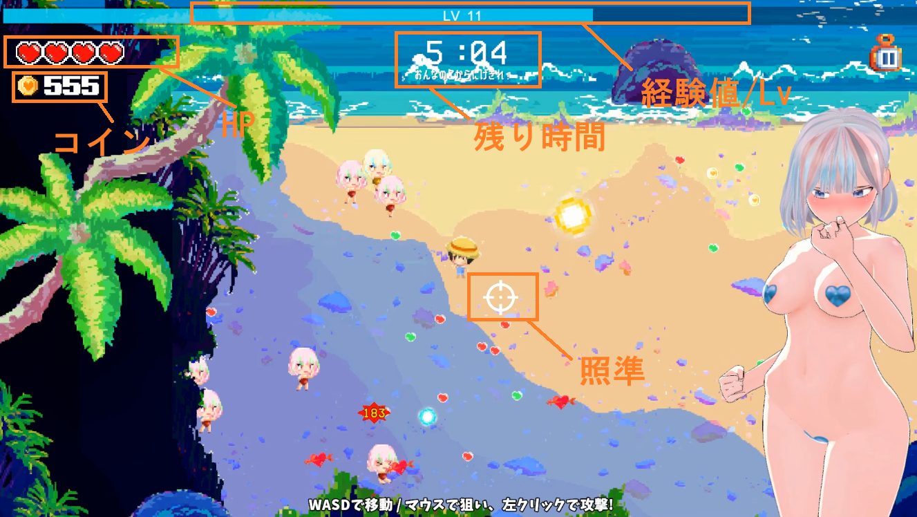 | 経験値 | 敵を倒し得られる♡で溜まりMAXでレベルアップする |