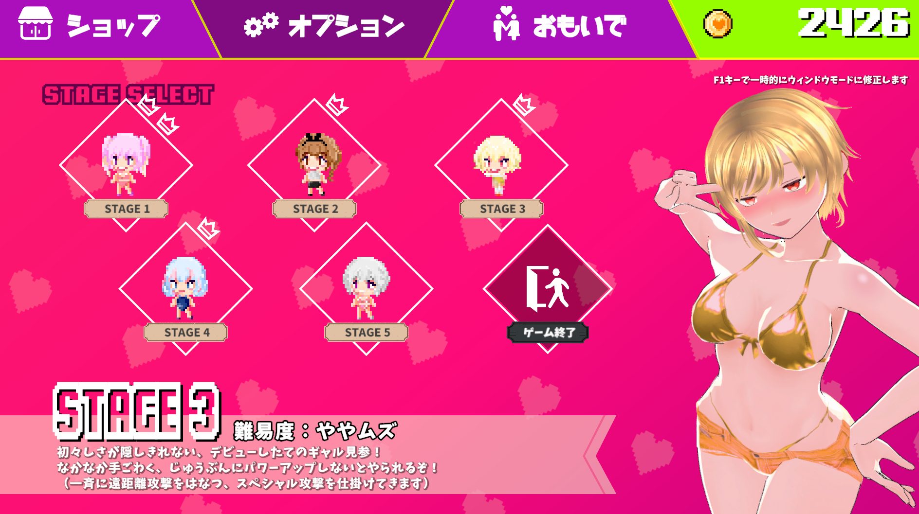 ステージは5つ用意されており、ステージごとに固定ヒロインが用意されています。