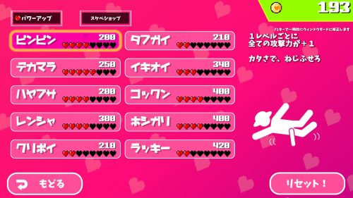 コインを消費する事でプレイヤーを強化させることが、ショップという項目から行えます。