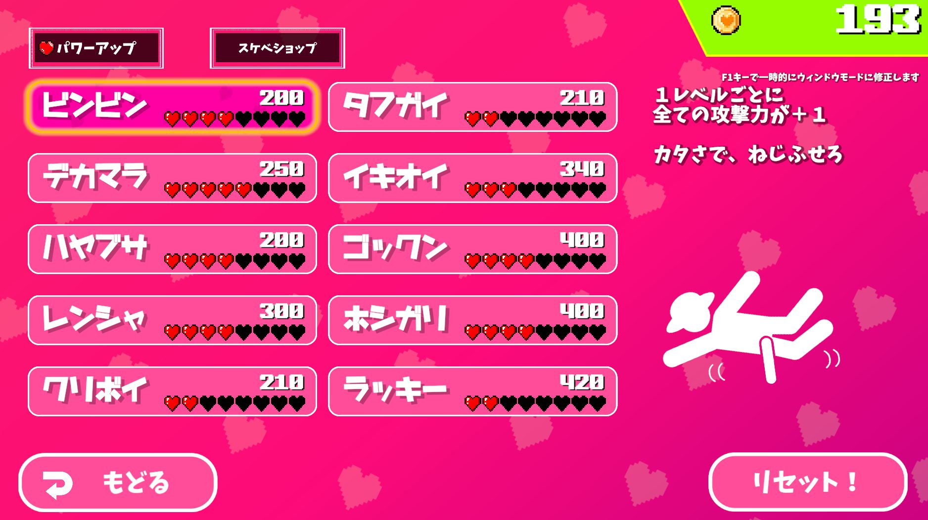 初回は4~5回ぐらいステージクリア出来なかったですが、コインでプレイヤー強化