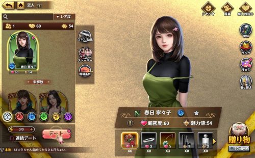 恋人キャラを入手した後には、恋人画面から恋人一覧が表示され、
