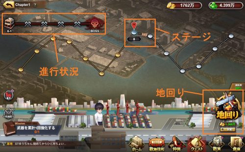 ストーリーを進めることで、店舗経営やエリア制圧といった主要コンテンツが開放され