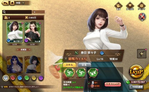 店舗経営することで収益を獲得した後には、キャラ育成になります。
