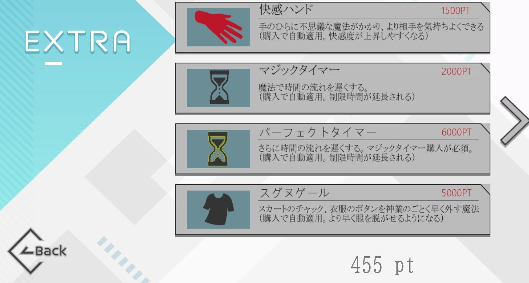 | マジックタイマー | 時間の流れを遅くする(痴漢できる時間が延びる) |