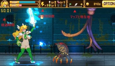 | マップと現在地 | マップの右端に行くとクリアになる |