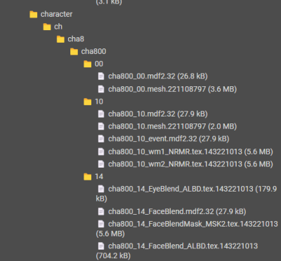 DLCのエイダの場合、ファイル構成の中に▼のようにcha800というファイルがあります。