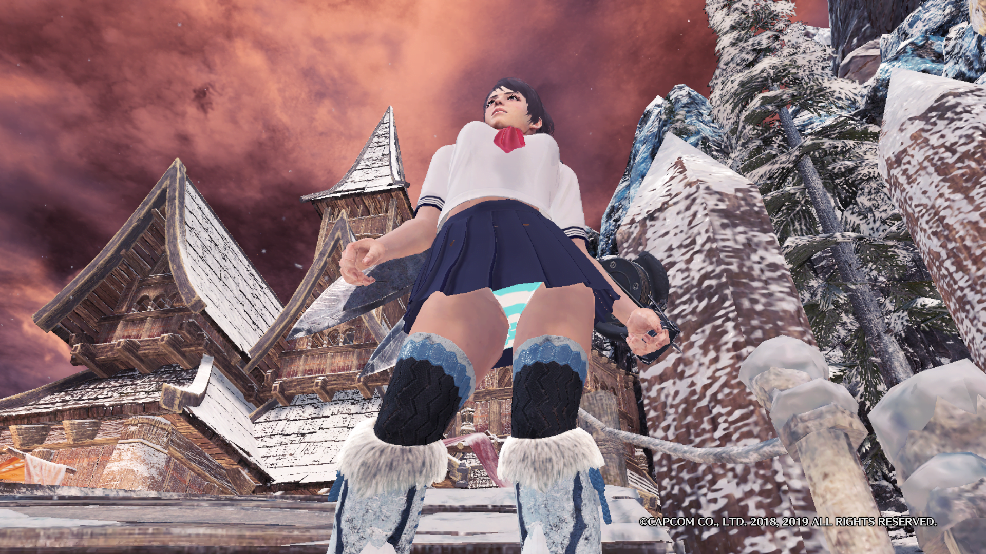 上位のキリンγ(ガンマ)装備の足を装備する事で、青白の縞パンを