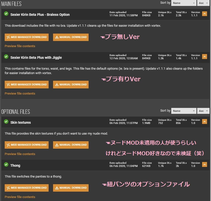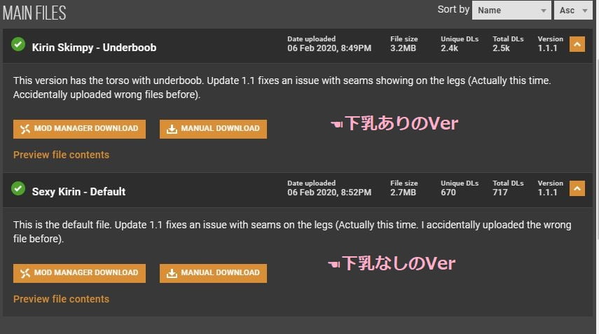 ※先ほどの「Sexier Kirin Beta Plus with jiggle physics」のMODとは